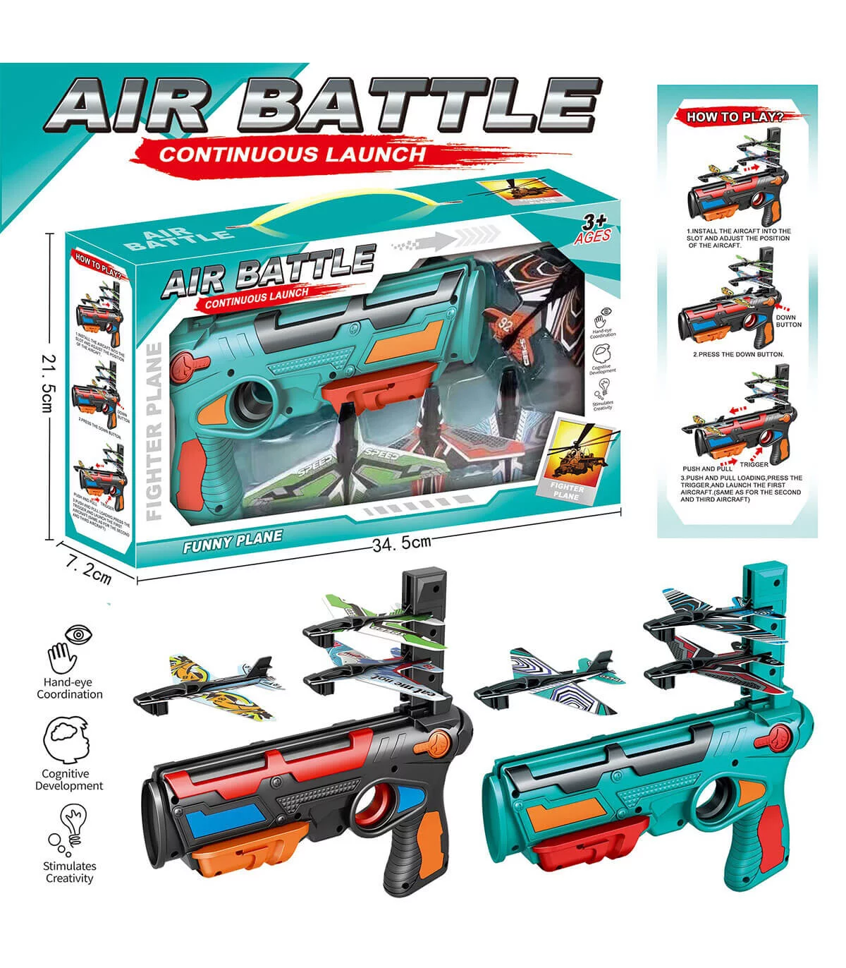 تأتي ألعاب الطائرة المنجنيق مع قاذفة تلقائية ومجموعة 4 طائرات شراعية من الفوم. يستمتع الأطفال بهذه اللعبة باللعب الداخلي والخارجي ويفضل الأطفال المنافسة في الهواء الطلق التي يمكن أن تطير بعيدًا