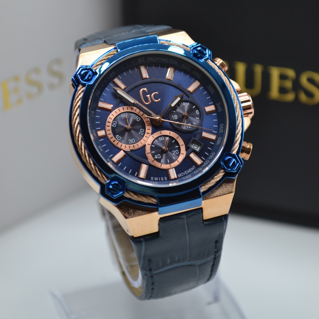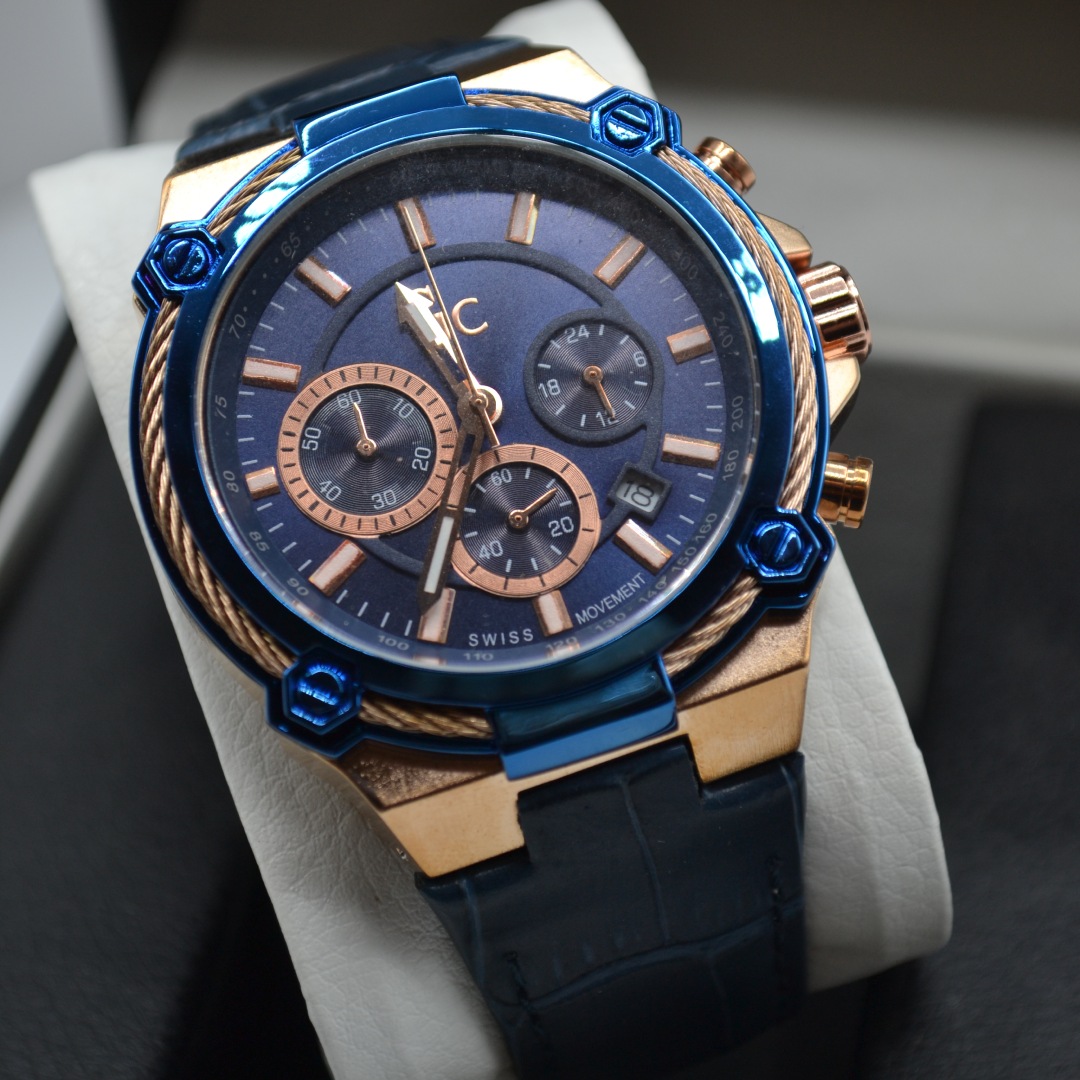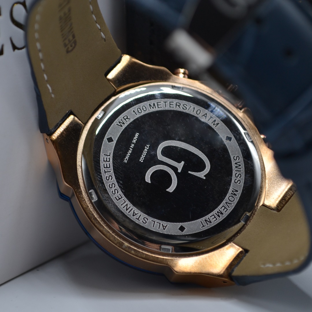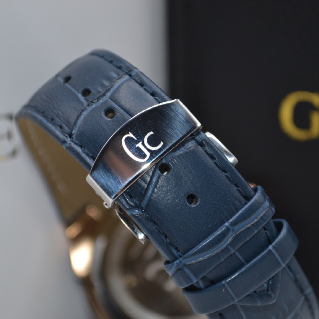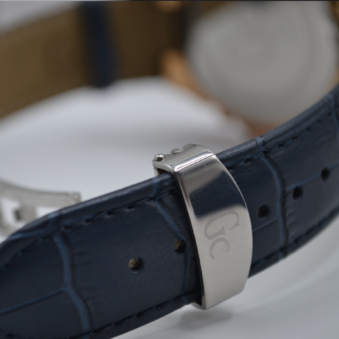 Montre GU – Chronographe bracelet en cuir bleu doré