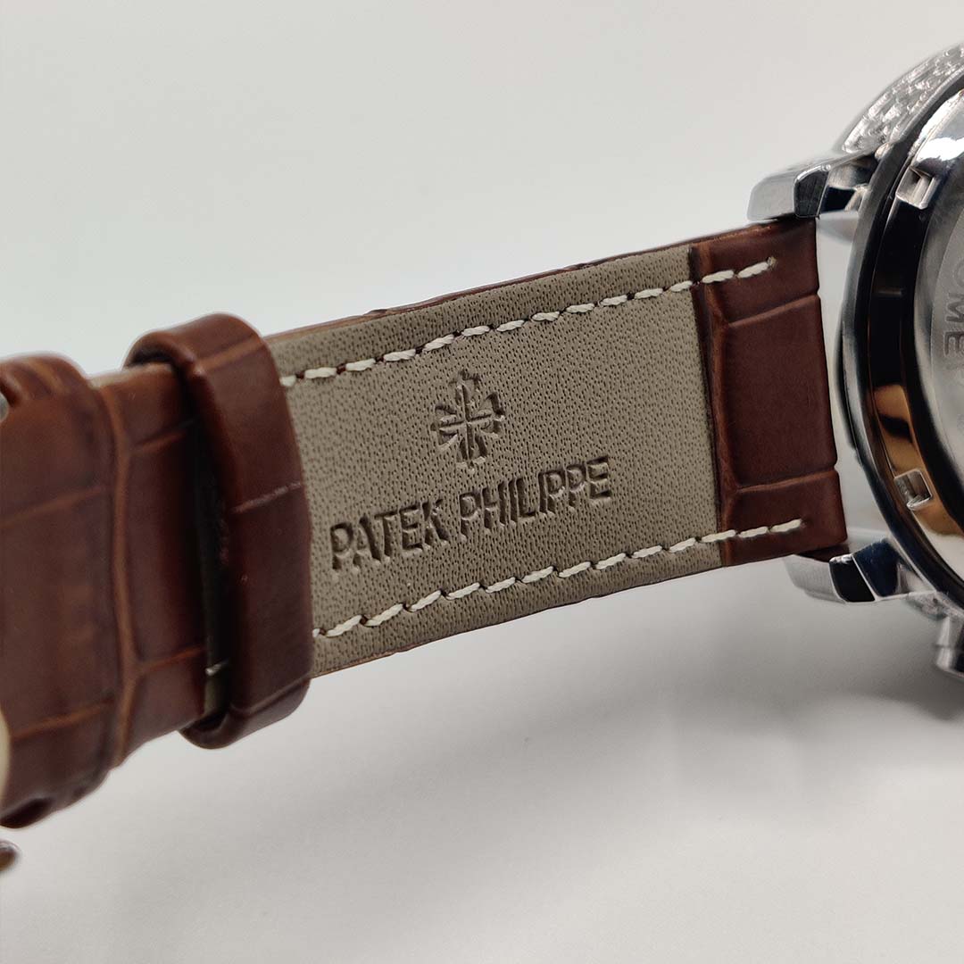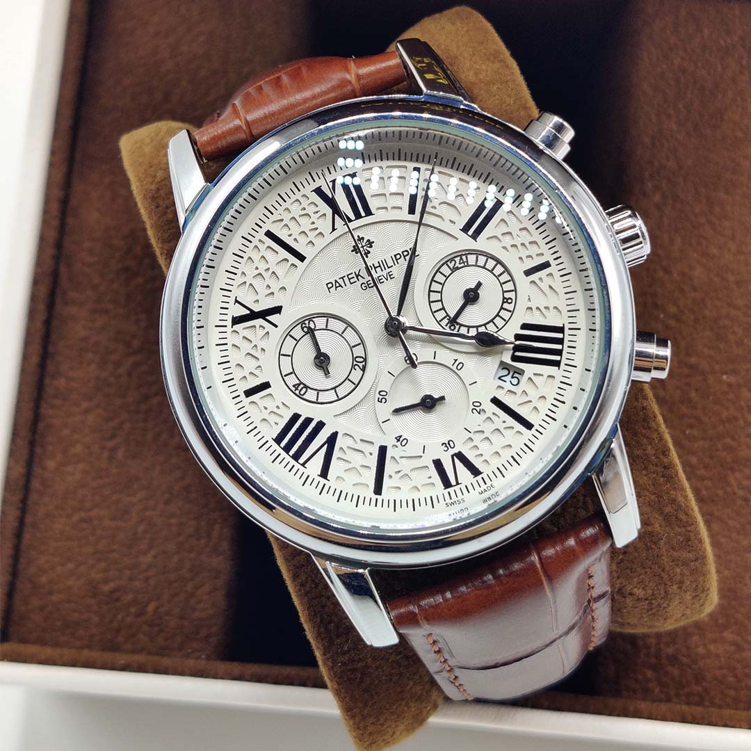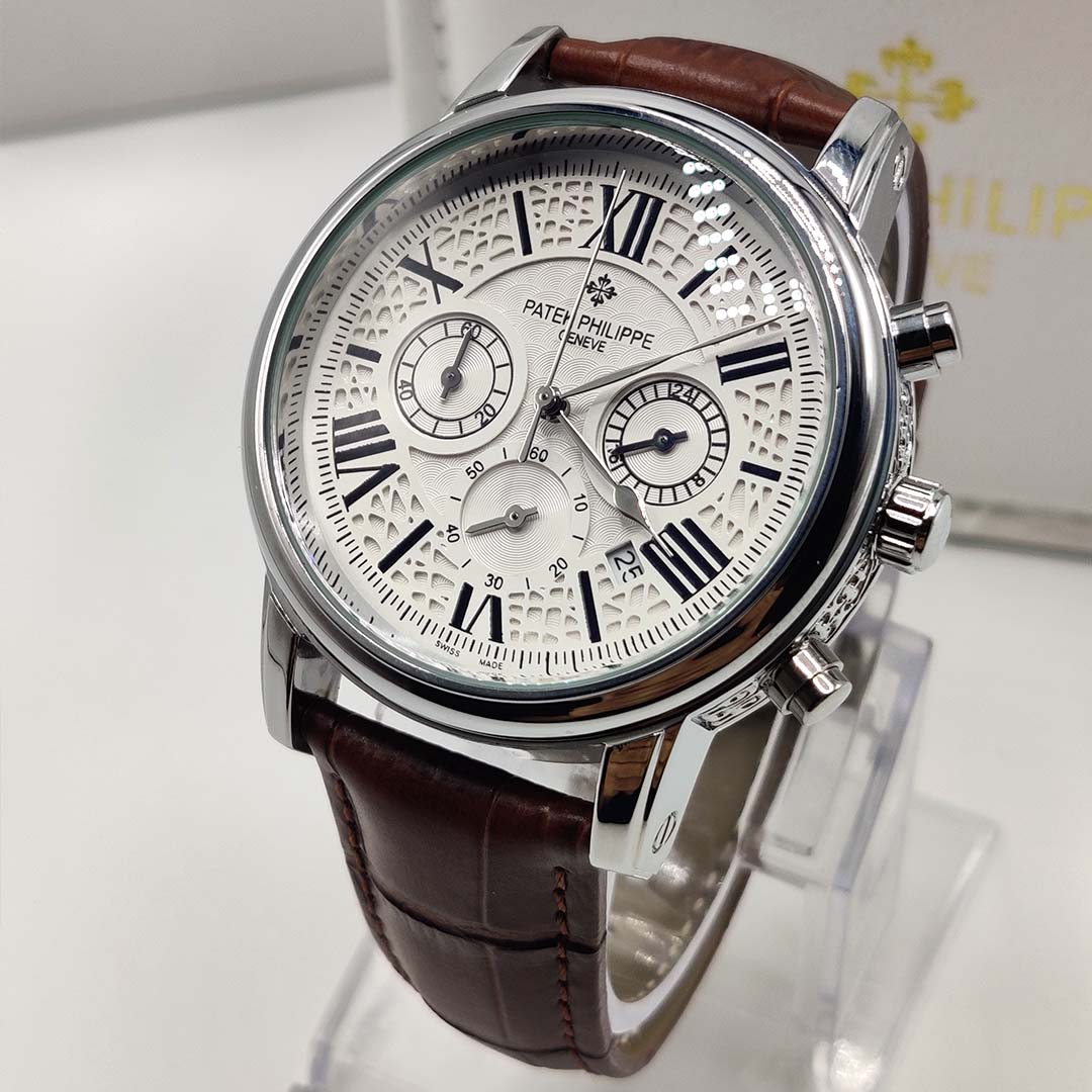 Montre PP – Chrono bracelet en cuir Marron Argenté