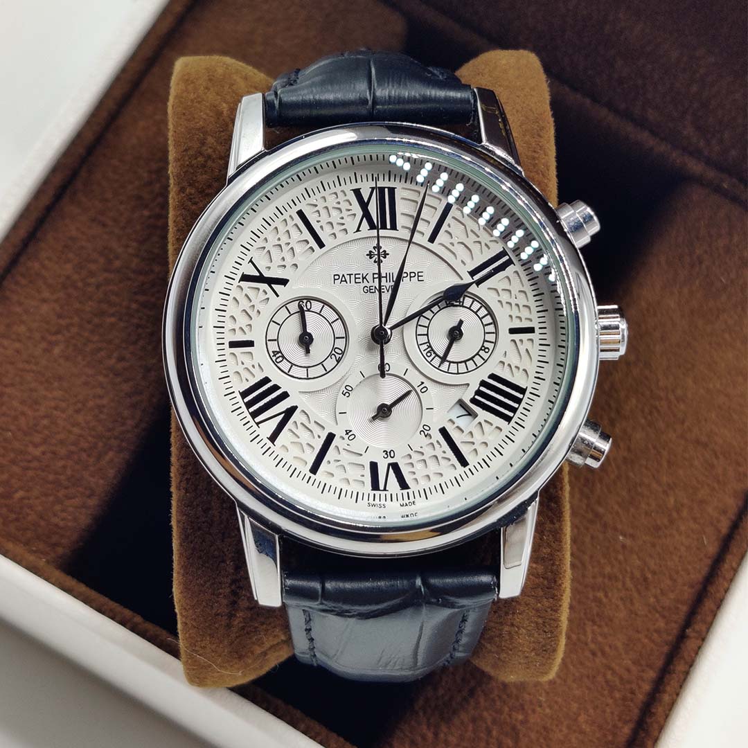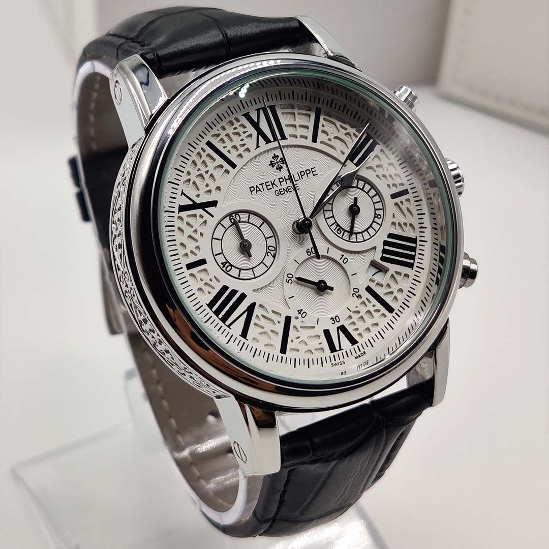 Montre PP – Chrono bracelet en cuir Noire Argenté