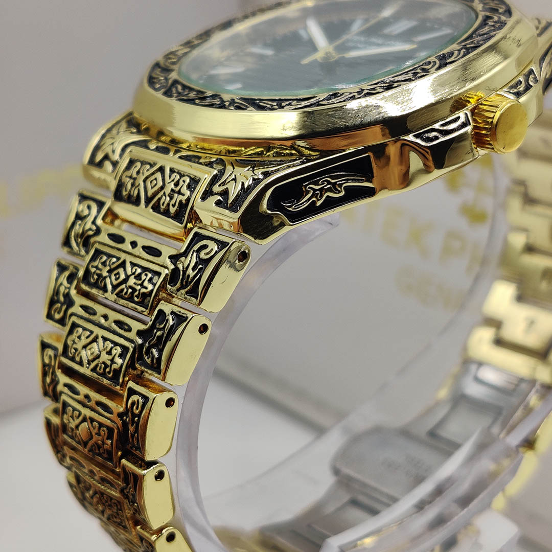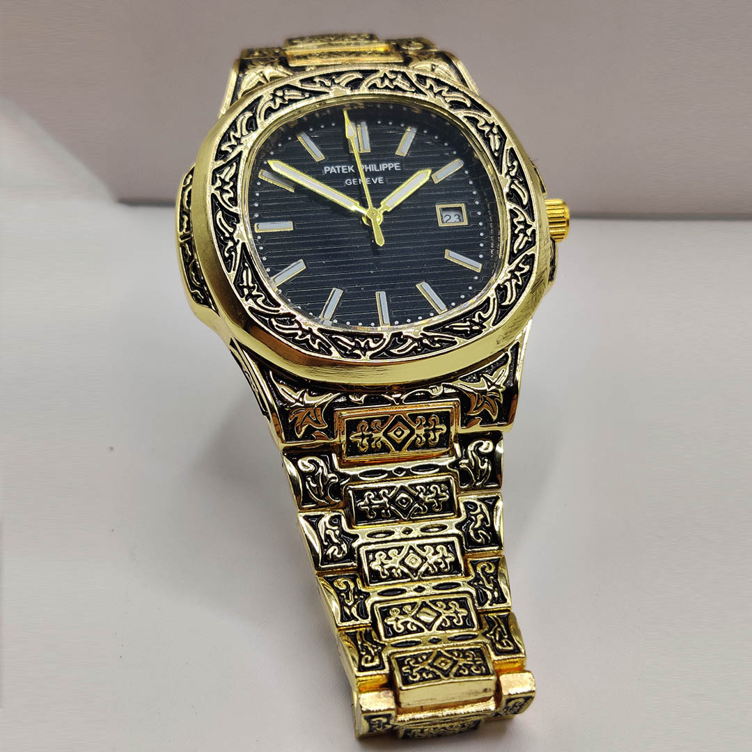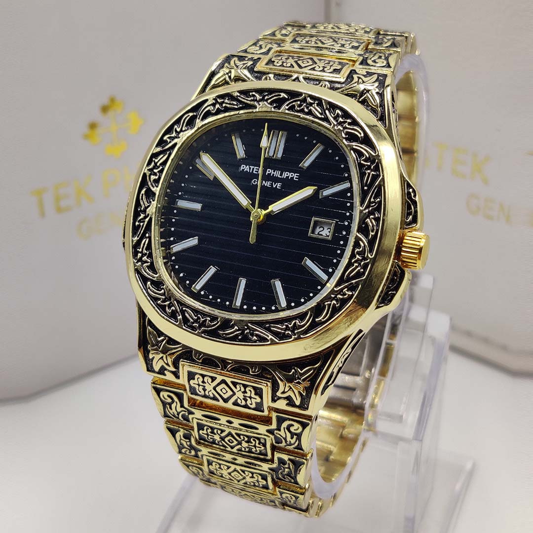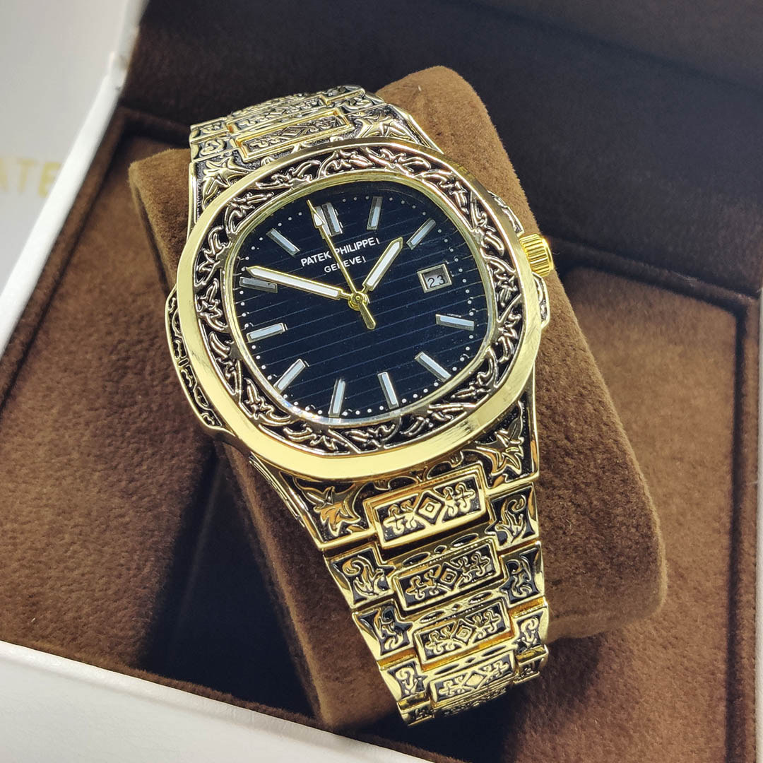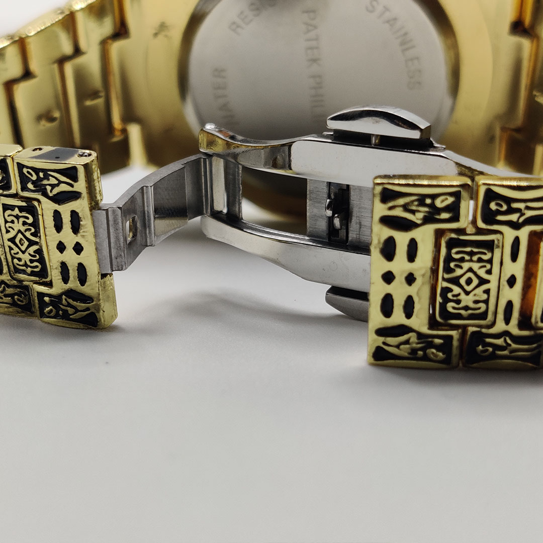 Montre Sculpté avec Dateur Livré dans un coffret Bracelet en Acier Inoxydable Couleur : Doré / Argent