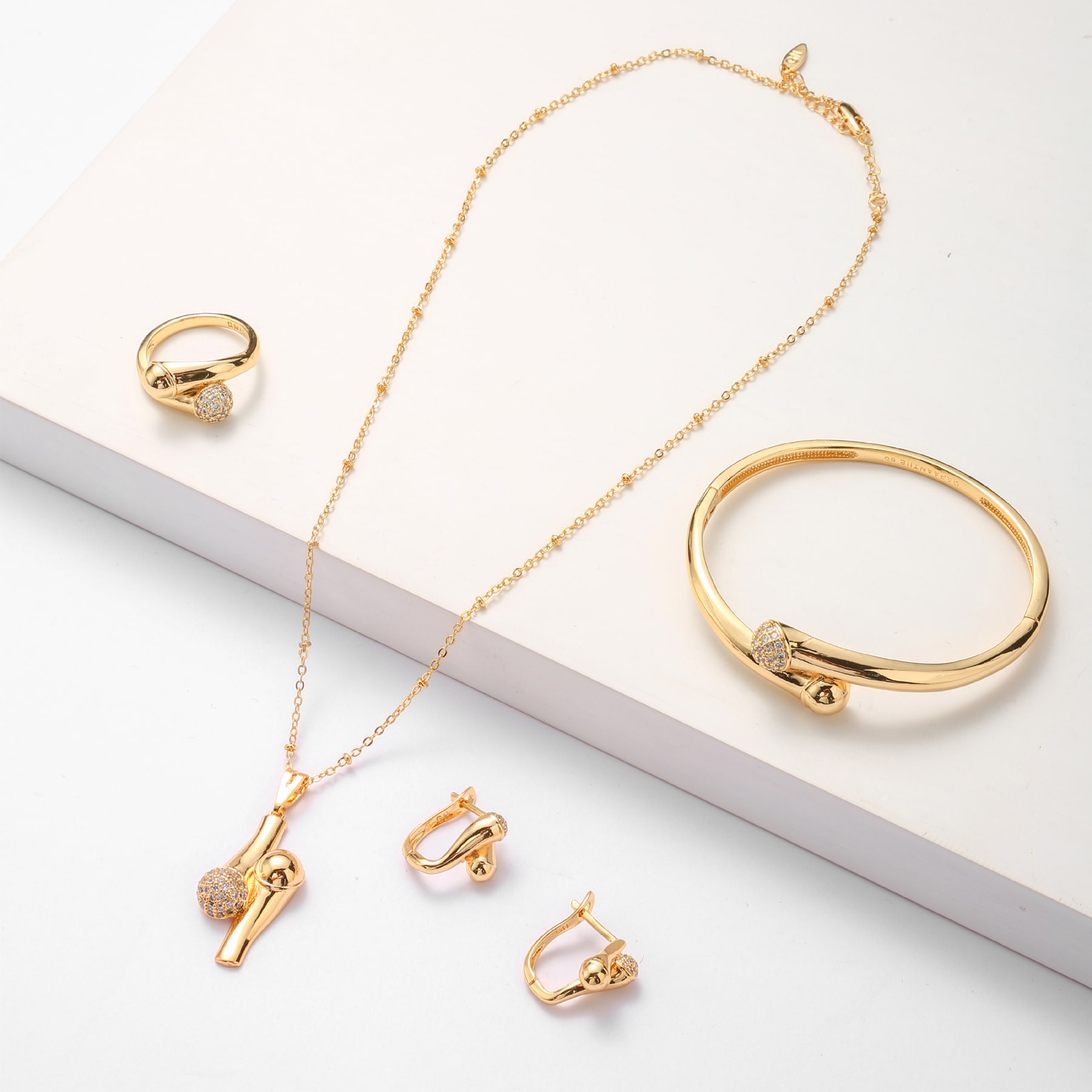 Notre parure plaquée or originale est un ensemble de bijoux de haute qualité conçu pour imiter l’apparence et l’éclat de l’or 18 carats véritable. Fabriquée à partir d’un matériau inoxydable, cette parure offre une durabilité exceptionnelle et résiste à la décoloration et à la ternissure.