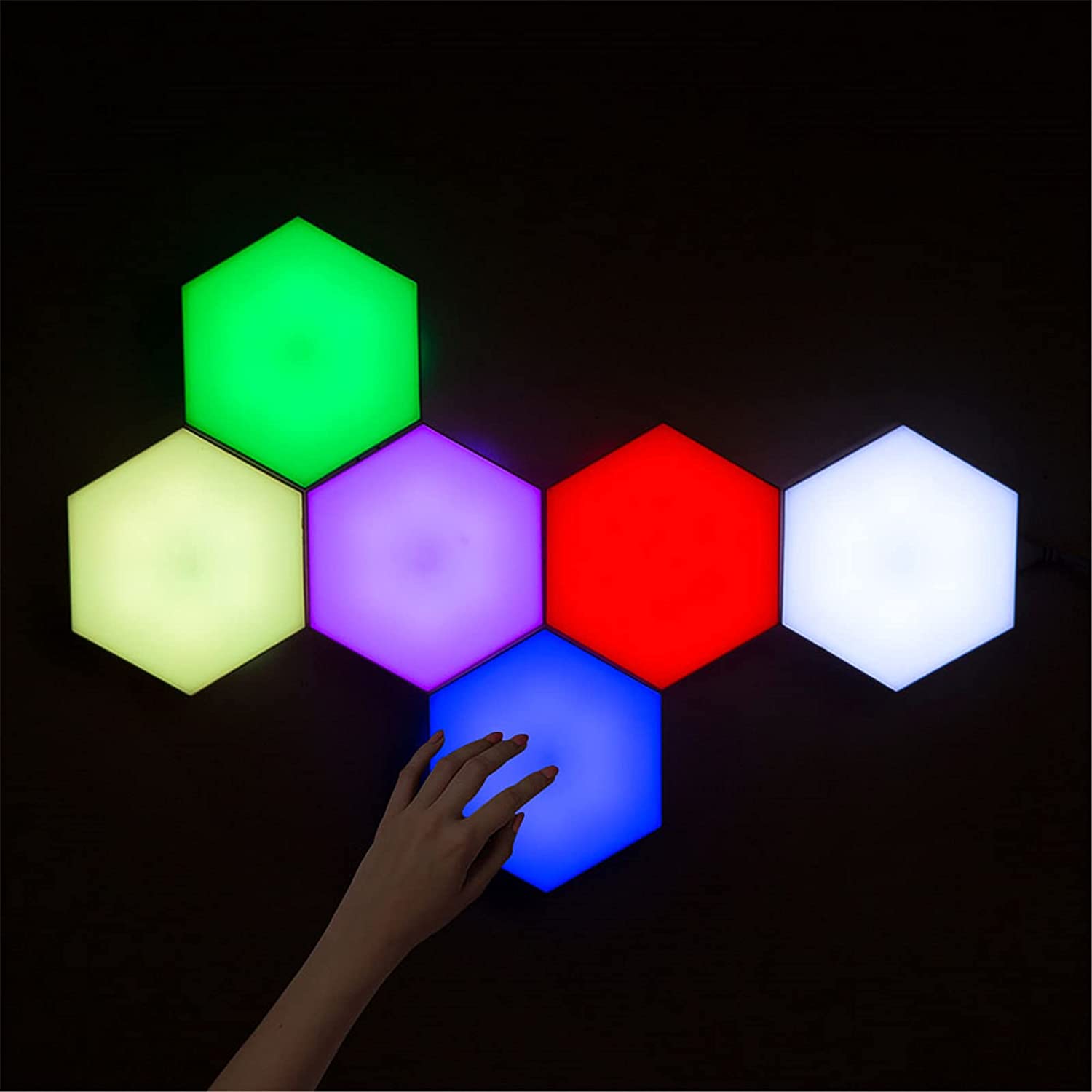 Panneau LED Mural Hexagonal Contrôle Tactile RGB Lampe Gaming Pour Gaming Setup / Deco Accueil / Fête Boite contient 6 pièces